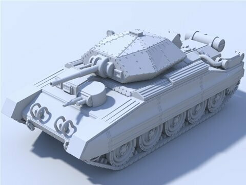 The original specifications for the Crusader tank called for a tank that had a 40mm frontal armour standard and 30mm elsewhere and a weight or no more than 18 tons, armament was the 2 Pounder Gun with a Besa 7.92 machine gun, there was also an auxiliary turret on the tank.